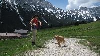 .................................................................................................................................. Wander-Saison ist eröffnet (01.06.) Haben heute einen spontanen Ausflug nach Leutasch gemacht und sind zum Saisonauftakt auf die Wettersteinhütte gewandert ... puhhh, das war anstrengend, Blick über die Hämmermossalm in's Gaistal